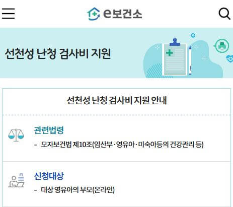 - 검사비: 출생일로부터 1년 이내