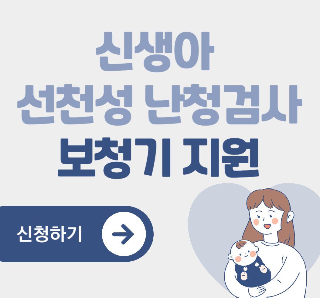 정부에서 신생아의 선청성 난청 조기 발견과 치료를 위해 검사비와 보청기 구입비를 지원해준다고 합니다. 난청을 제때 관리하지 않으면 언어 발달 지연, 사회성 저하, 심지어 지능 발달 장애까지 이어질 수 있어요. 신생아 난청검사비와 최대 135만원까지 보청기 구입비를 지원받을 수 있으니 꼭 신청해보시기 바랍니다.